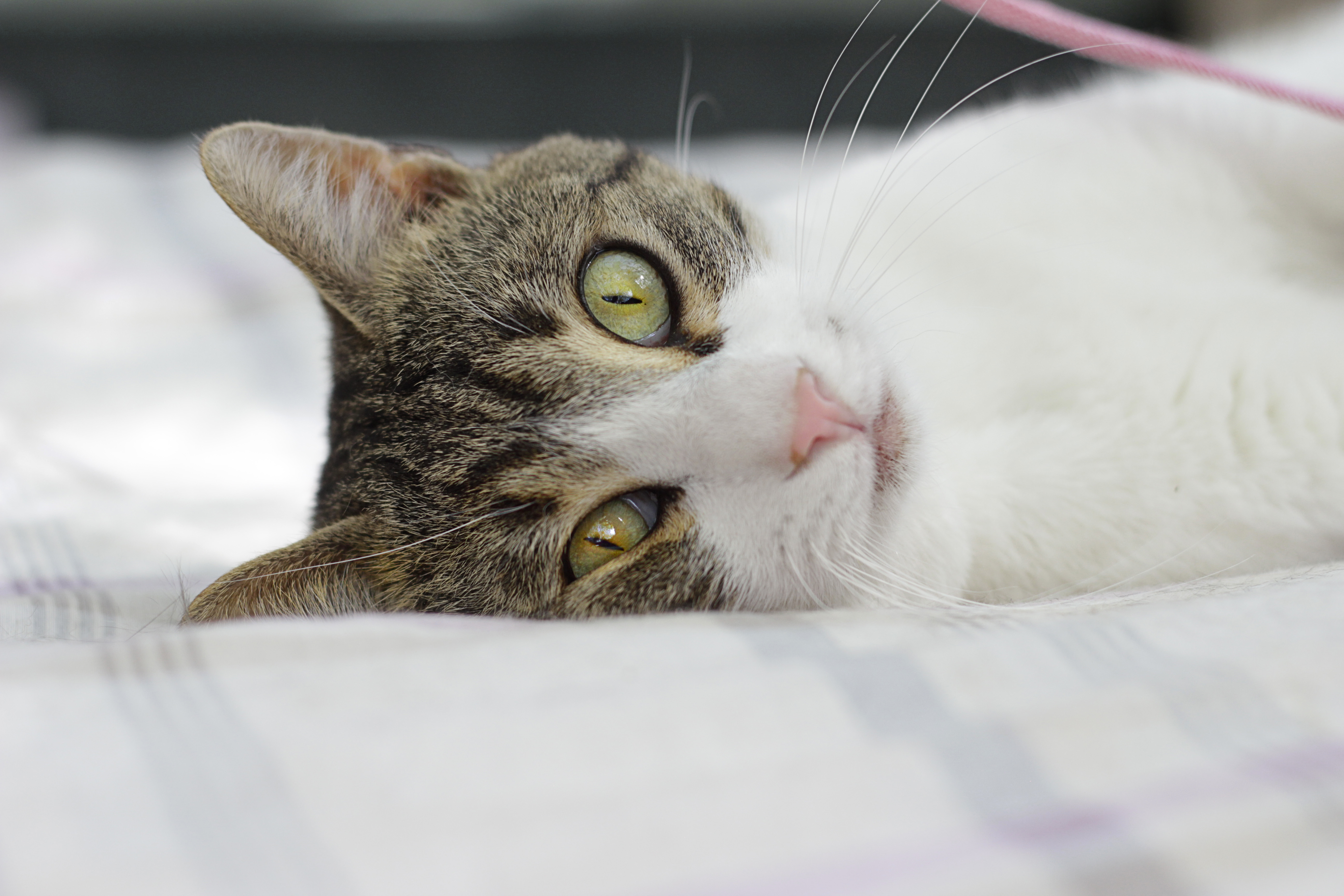 És un gat molt bo, amb tota la vida per endavant. Va arribar amb força desconfiança però ara ja s’apropa buscant carícies o amb ganes de jugar si veu que portem algun fil amb el que posar en pràctica el seu instint caçador. 😸