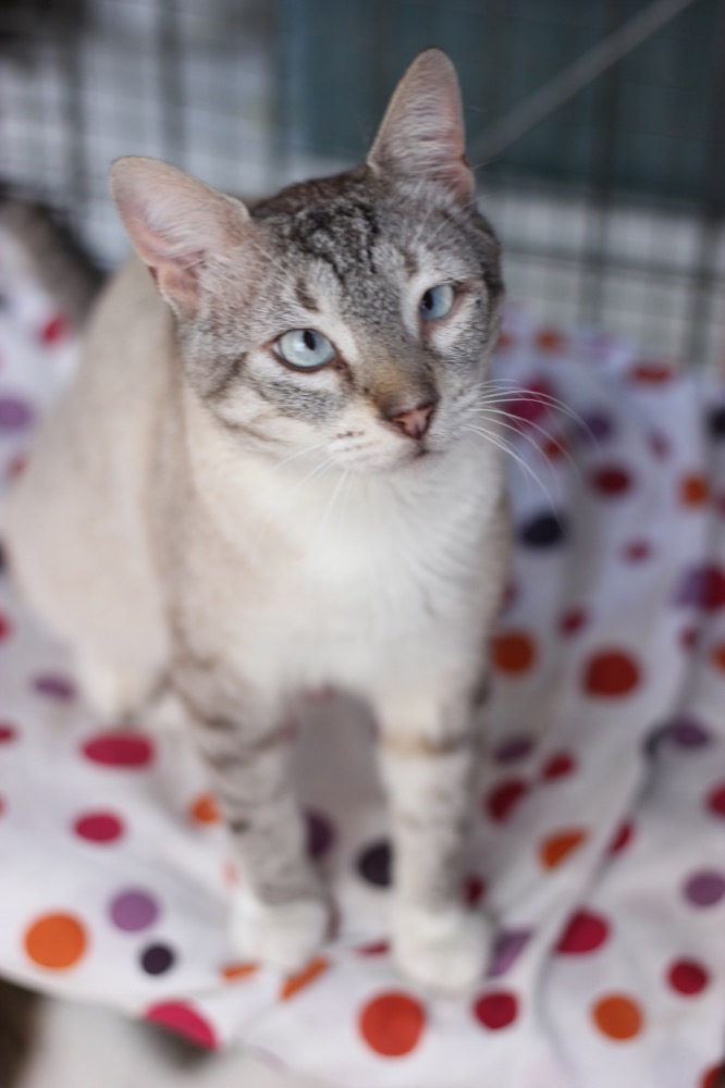 Un encant de gat. Li agrada molt menjar i sempre té molta gana! És dolç, afectuós i a la gàbia està una mica desesperat per sortir i que el treguin d’allà.
